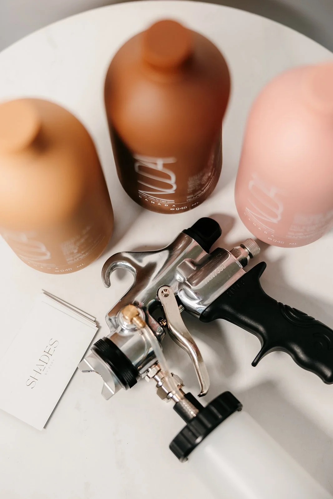A personalized spray tan done by our expert SHADES by EVRY artist in-studio.